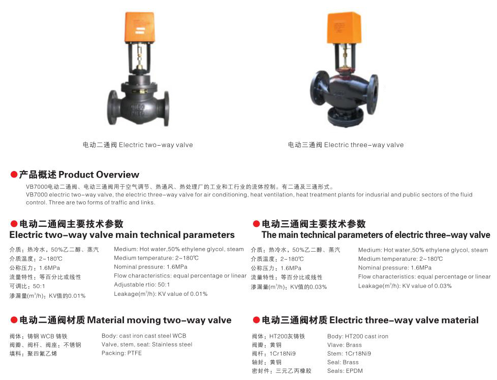 VB7000电动二通阀、电动三通阀用于空气调节、热通风、热处理厂的工业和工行业的流体控制。有二通及三通形式。 ...