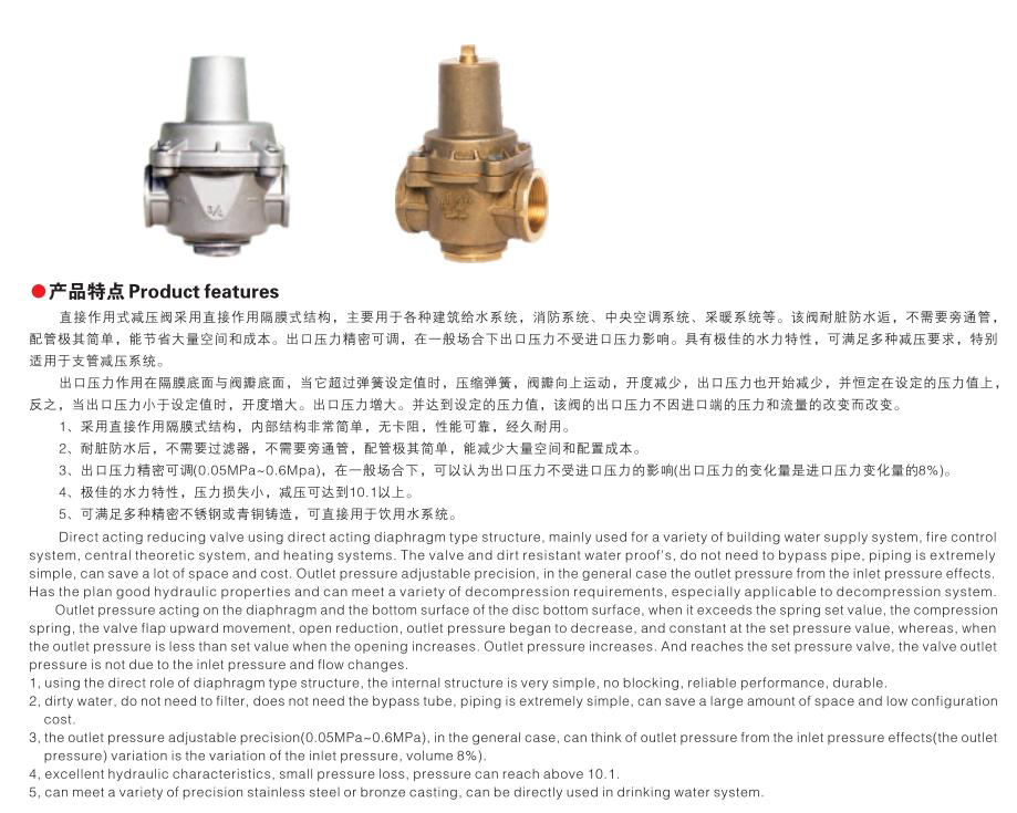 直接作用式减压阀采用直接作用隔膜式结构,主要用于各种建筑给水系统,消防系统、中央空调系统、采暖系统等。该阀耐脏防水逅,不需要旁通管,配管极其简单,能节省大量空间和成本。 ...