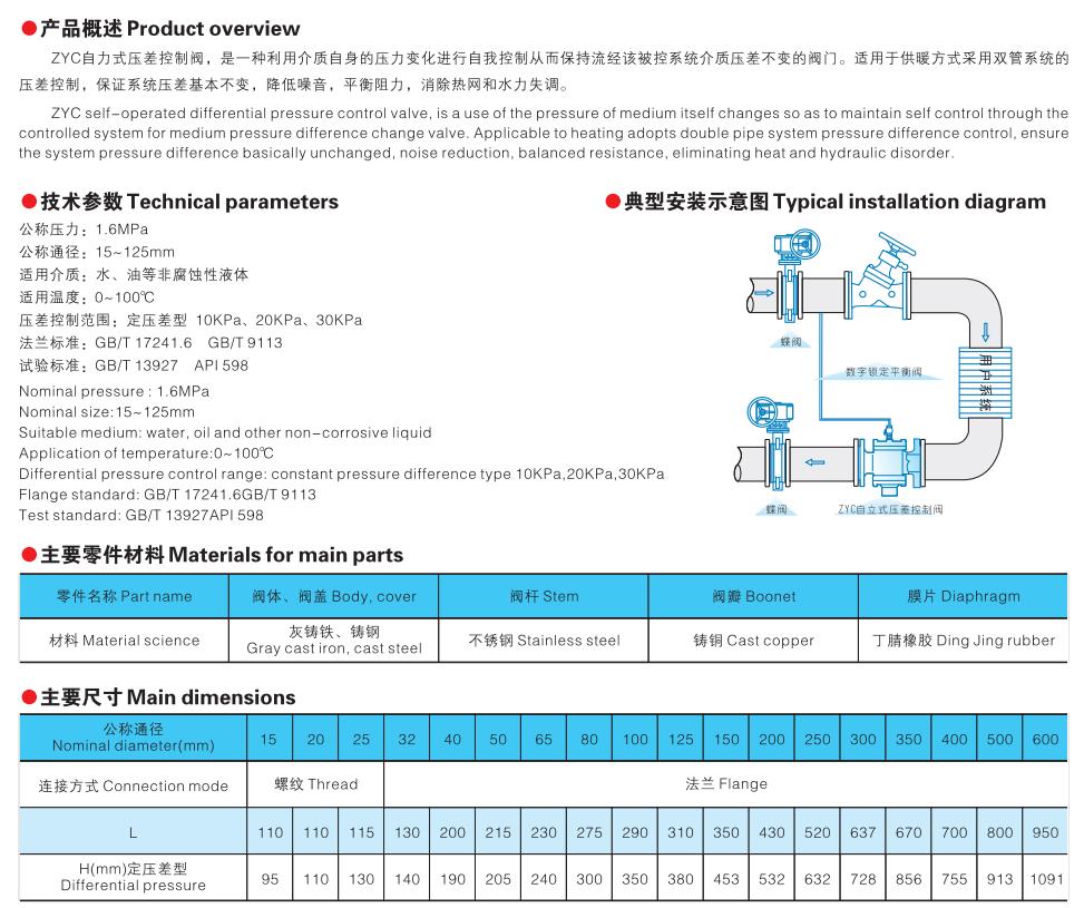 ZYC自力式压差控制阀,是一种利用介质自身的压力变化进行自我控制从而保持流经该被控系统介质压差不变的阀门。适用于供暖方式采用双管系统的压差控制,保证系统压差基本不变。 ...